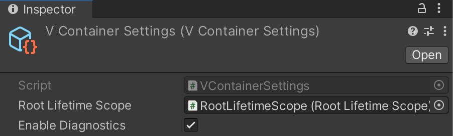- Choose Window -> VContainer Diagnostics to open window as a screenshot