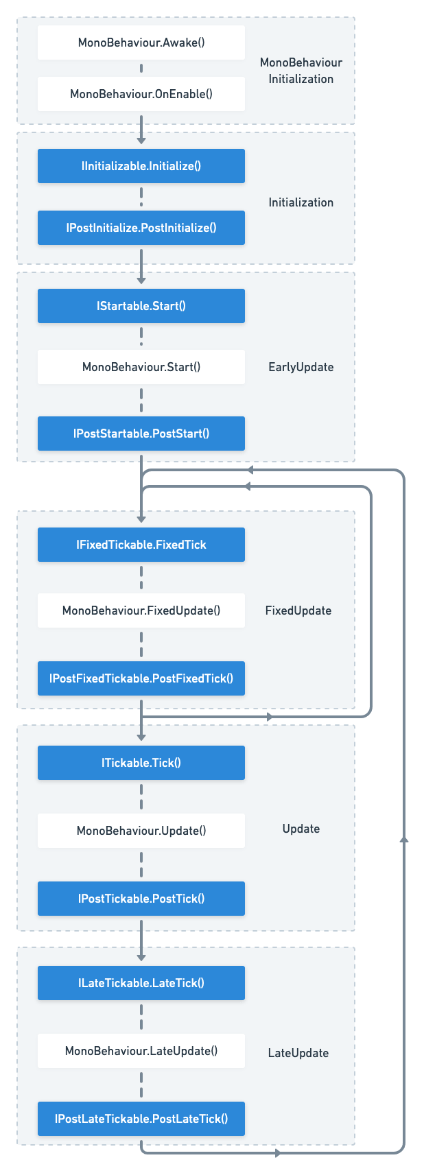 IPostFixedTickable.PostFixedTick() | After MonoBehaviour.FixedUpdate() |